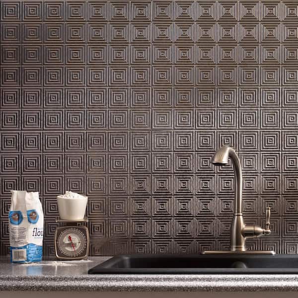 18.25 in. x 24.25 in. Miniquattro Vinyl Backsplash Panel in Galvanized Steel (Pack of 5)
