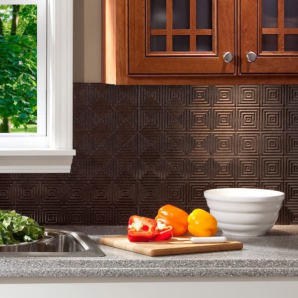 Miniquattro 18.25 in. x 24.25 in. Vinyl Backsplash Panel in Smoked Pewter (5-Pack)