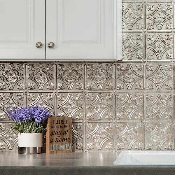 Traditional 1 18 in. x 24 in. Vintage Metal Vinyl Decorative Wall Tile Backsplash 15 sq. ft. Kit