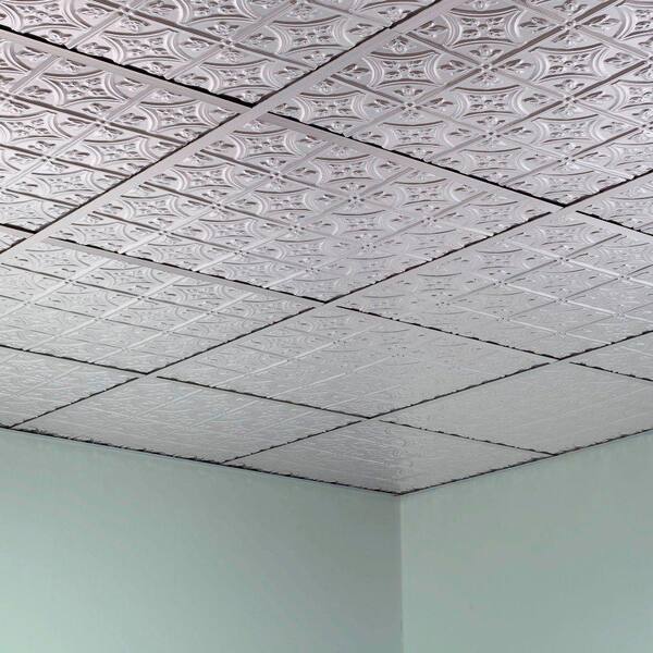 Traditional Style #1 2 ft. x 2 ft. Vinyl Lay-In Ceiling Tile in Brushed Aluminum
