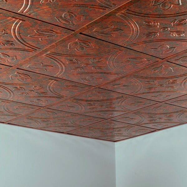 Traditional Style #5 2 ft. x 2 ft. Vinyl Lay-In Ceiling Tile in Copper Fantasy