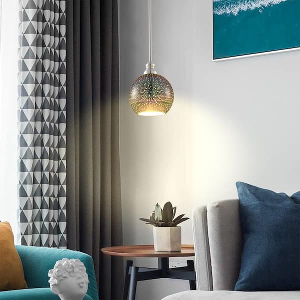 6.38 in. Multicolored Fireworks Glass Drum Pendant Shade for Mini Pendant Light with 1.65 in. Lip Fitter (Not included)