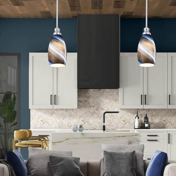 7.64 in. Blue Art Glass Drum Pendant Light Shade with 1.65 in. Lip Fitter (Not included)