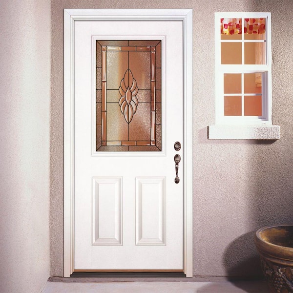 33.5 in. x 81.625 in. Sapphire Patina 1/2 Lite Unfinished Smooth Left-Hand Inswing Fiberglass Prehung Front Door