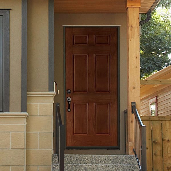 37.5 in. x 81.625 in. 2-Panel Plank Stained Chocolate Mahogany Right-Hand Inswing Fiberglass Prehung Front Door