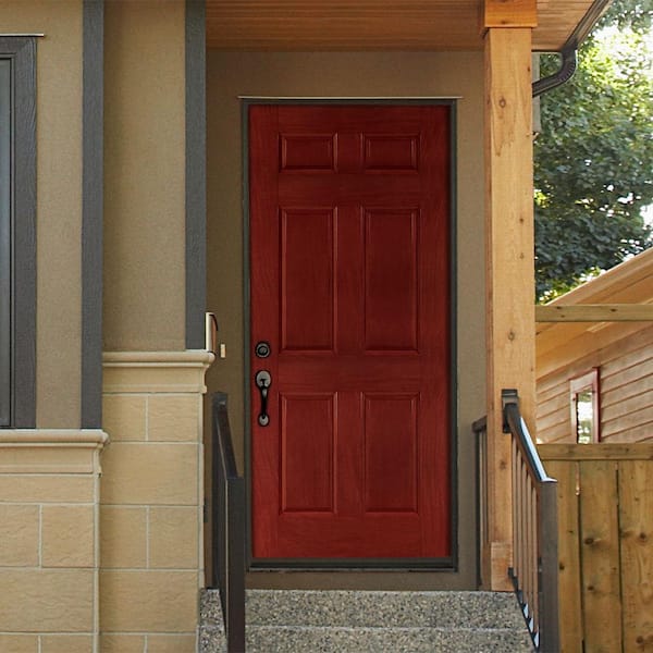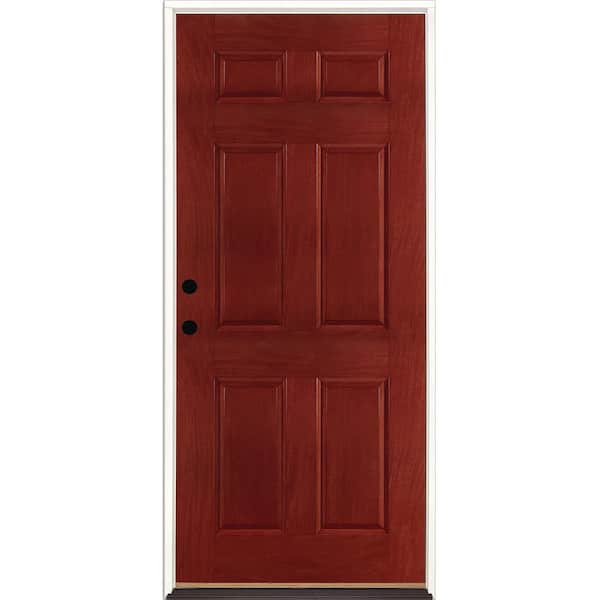 37.5 in. x 81.625 in. 6-Panel Stained Cherry Mahogany Right-Hand Inswing Fiberglass Prehung Front Door