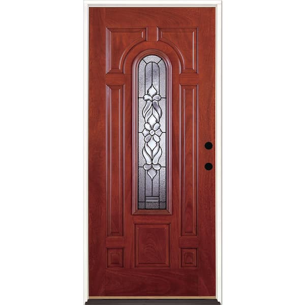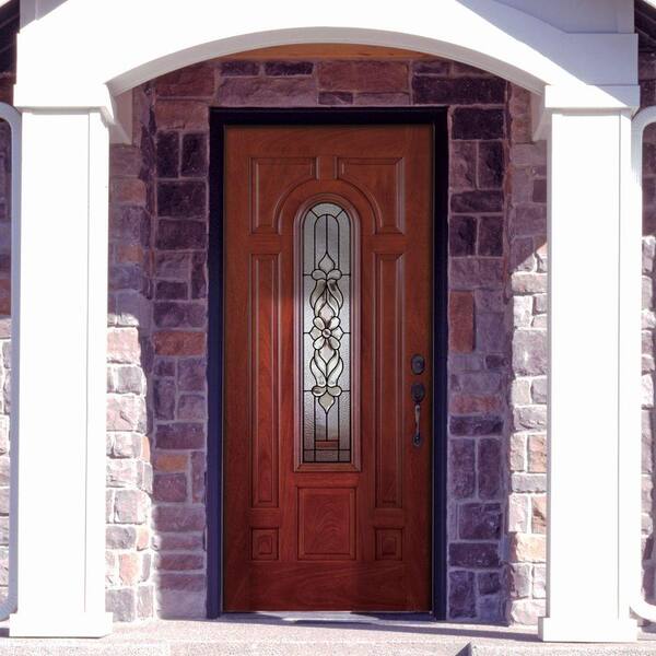 37.5 in. x 81.625 in. Lakewood Patina Center Arch Stained Cherry Mahogany Left-Hand In Fiberglass Prehung Front Door