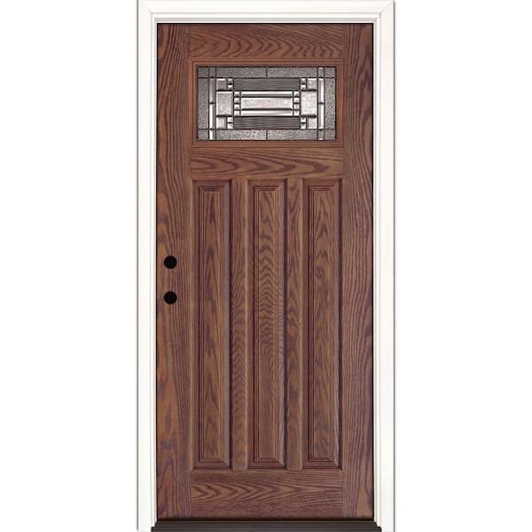37.5 in. x 81.625 in. Preston Patina Craftsman 1/4 Lite Stained Medium Oak RH Inswing Fiberglass Prehung Front Door