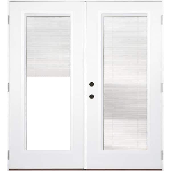 72 in. x 80 in. Left Hand Outswing Impact Mini Blind Smooth Unfinished Fiberglass Prehung French Patio Door