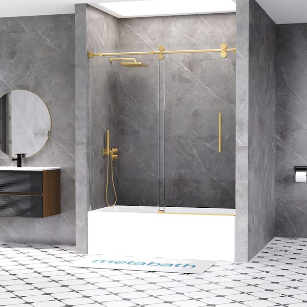 56 to 60 in. W x 66 in. H Single Sliding Frameless Tub Door in Brushed Gold with 5/16 in. Tempered Clear Glass