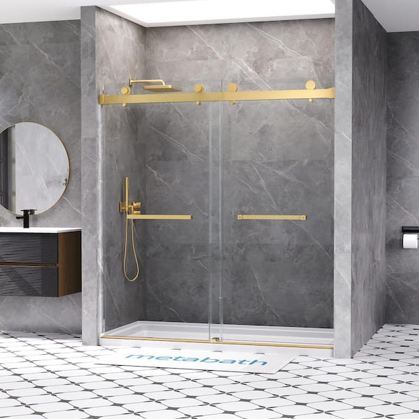 66 to 72 in. W x 76 in. H Double Sliding Frameless Shower Door in Brushed Gold with 3/8 in. Tempered Clear Glass