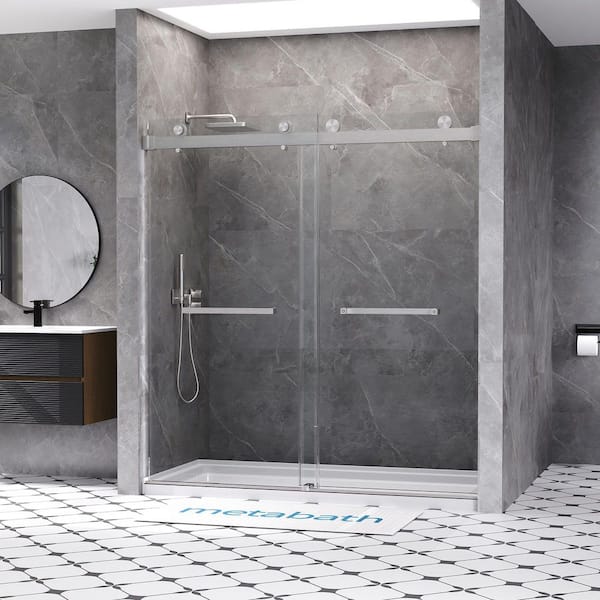 66 to 72 in. W x 76 in. H Double Sliding Frameless Shower Door in Brushed Nickel with 3/8 in. Tempered Clear Glass