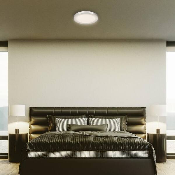 11 in. Dimmable Nickel Integrated Color Selectable LED Edge-Lit Round Flat Panel Ceiling Flushmount