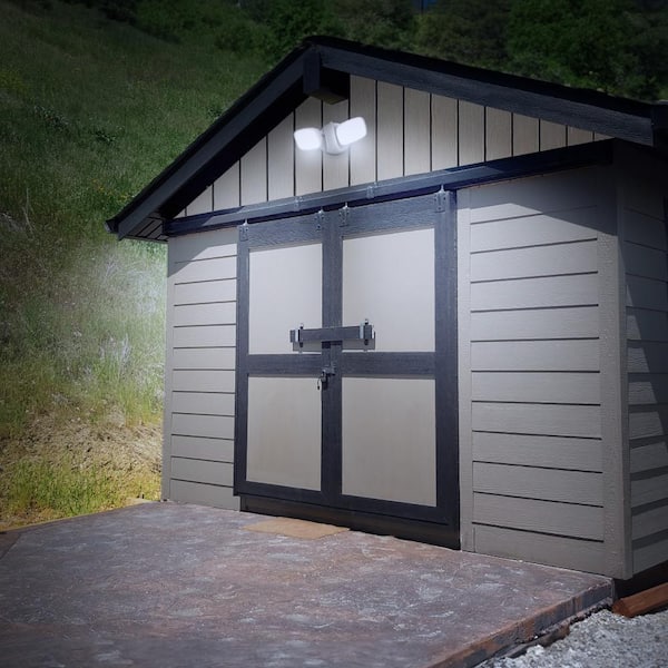 • White Integrated LED dusk to dawn dual head outdoor flood light