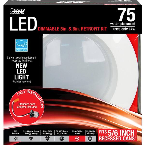 5 in. or 6 in. 75-Watt Equivalent Warm White Dimmable LED Integrated Recessed White Trim Retrofit Downlight