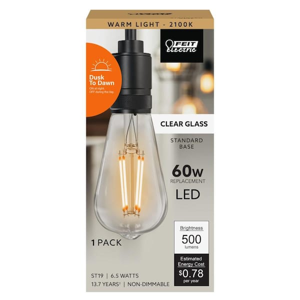 60-Watt Equivalent ST19 Straight Filament Dusk to Dawn Clear Glass E26 Vintage Edison LED Light Bulb Warm White(12-Pack)