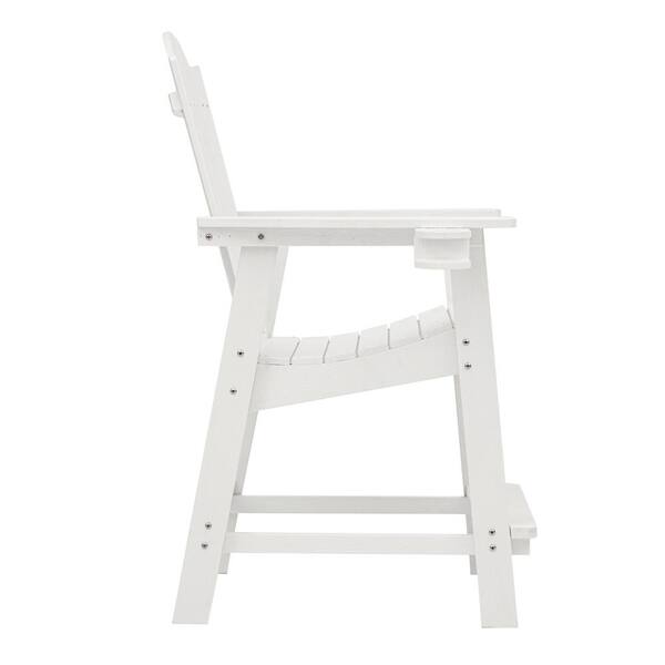 Felder White Recycled Poly Weather Resistant Tall Plastic Adirondack Outdoor Bar Stool With Cup Holder For Pool(2-Pack)
