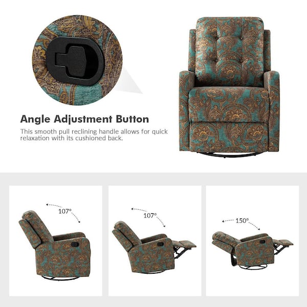 Felipe Teal Wingback Swivel Rocker Recliner with Metal Base