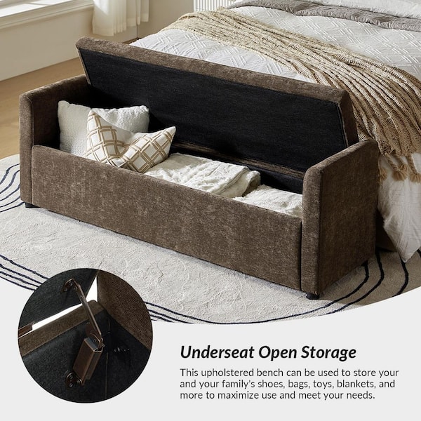 Felipe Wide Taupe Storage Bench with Plastic Legs 59.4 in.