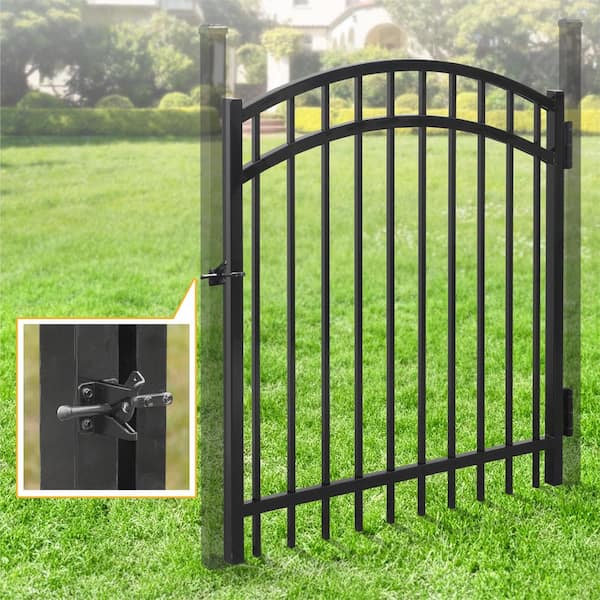 4 ft. x 4 ft. Anti-Rust Metal Black Arched Fence Gate