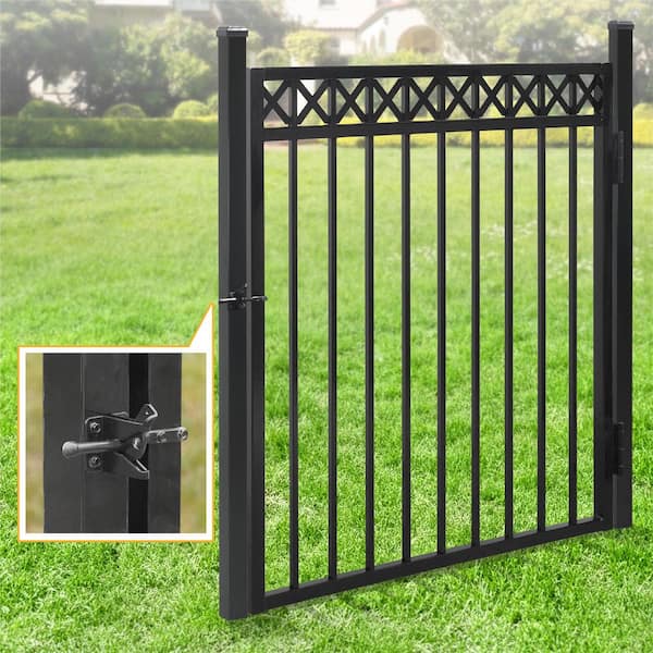4 ft. x 6 ft. Heavy-Duty Spaced Bar Flat Top Metal Fence Panel with Decorative Fence Gate(Set of 76 ft. )