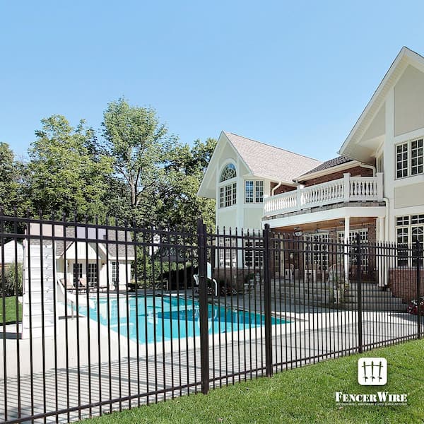 5 ft. x 8 ft. Black Steel Spaced Bar Pinnacle Metal Fence Panel with Arched Fence Gate (Set of 100 ft.)