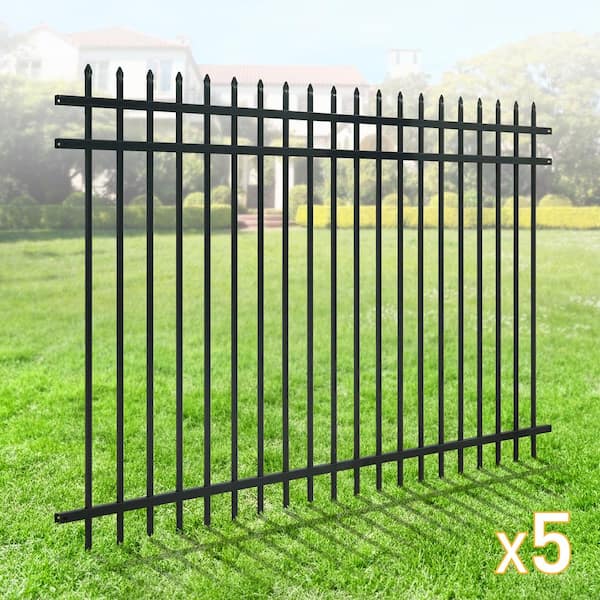 5 ft. x 8 ft. Heavy-Duty Steel Spaced Bar Pointed Pinnacle Metal Fence Panel (Pack of 5)