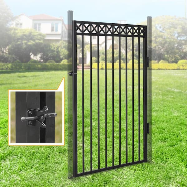 6 ft. x 4 ft. Flat Top Anti-Rust Metal Black Fence Gate