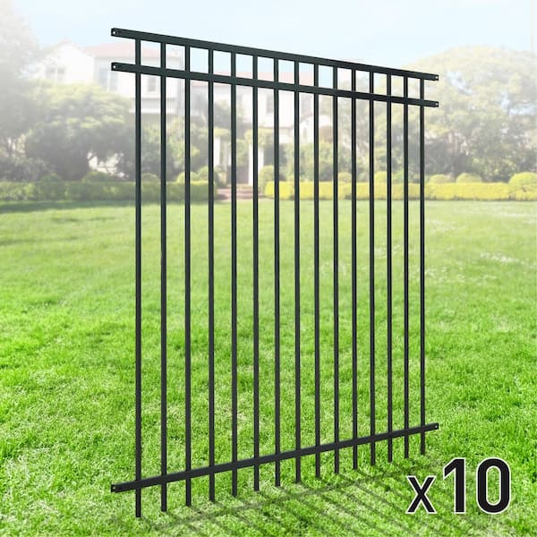 6 ft. x 6 ft. Heavy Duty Spaced Bar Flat Top Flat Metal Fence Panel, Anti-Rust Garden Fence Panel (Pack of 10)