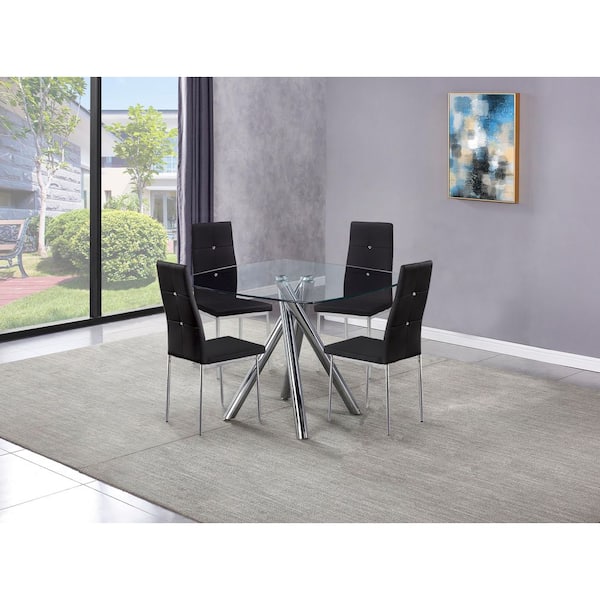 Fermin 5-Piece Black Modern Glass Dining Set