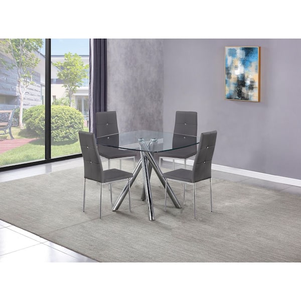 Fermin 5-Piece Gray Modern Glass Dining Set