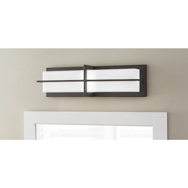 Europa 18 in. 20-Watt Aged Bronze Integrated LED Sconce with White Glass Shade