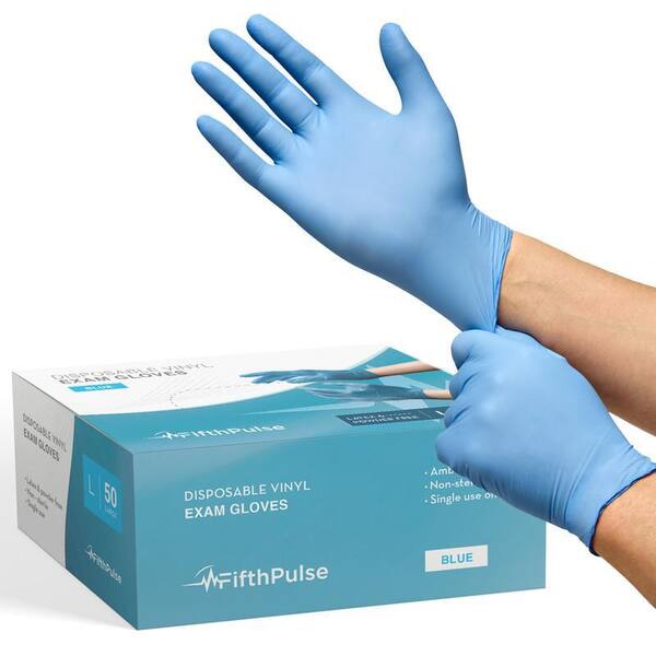 Large Vinyl Gloves in Blue Powder Free Medical Examination Disposable (50-Count)