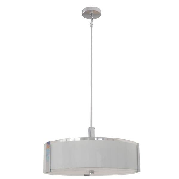 3-Light Chrome Chandelier with White and Clear Flat Glass Shade