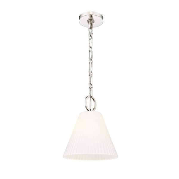 Alaric 100-Watt 1-Light Polished Nickel Pendant-Light with White Glass shade, no bulbs included