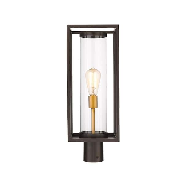 Dunbroch 1-Light Bronze Brass Aluminum Hardwired Outdoor Weather Resistant Post Light Round Fitter with No Bulb Included
