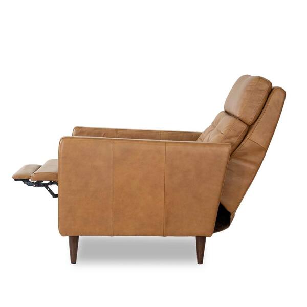 Filena Tan Mid-Century Tufted Tight Back Genuine Leather Upholstered Recliner Chair