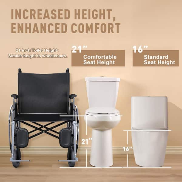 12 in. Rough In Extra Tall Height 2-Piece 0.8/1.28 GPF Dual Flush Elongated Toilet in White, Soft Close Seat Included