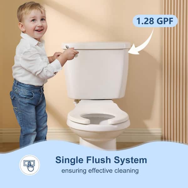 Kid's One-piece Toilet 10 Rough in 1.28 GPF Single Flush Round Toilet in White Seat Included
