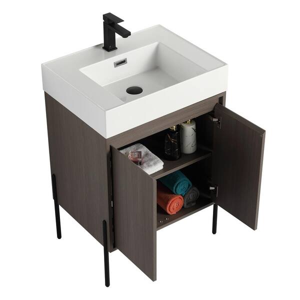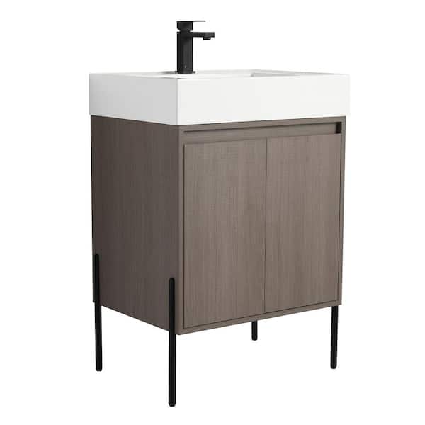 Crownpoint 24 in. Freestanding Single Gray Oak Bathroom Vanity with White Acrylic Sink Top Unassembled