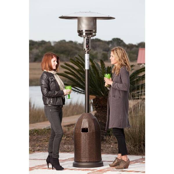 46,000 BTU Mocha Propane Gas Patio Heater with All-Weather Wicker Tank Cover
