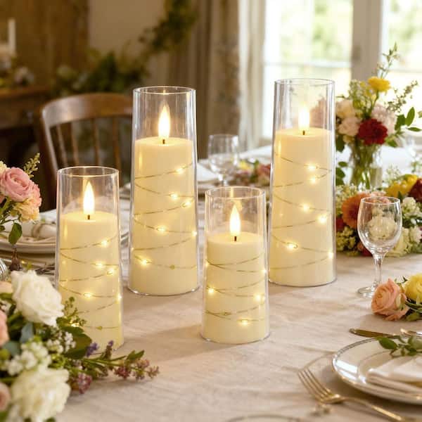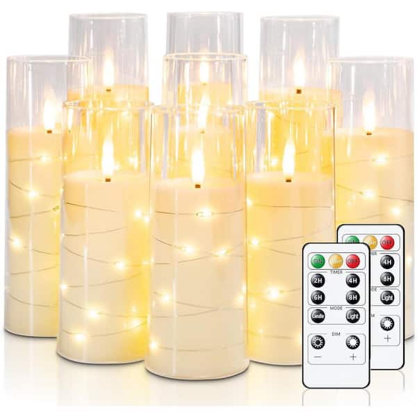 Flameless Candle with Remote Timer, Acrylic Battery Operated LED Pillar Candles 9-Pack Ivory