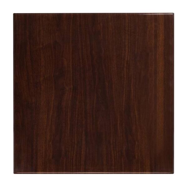 30 in. Square High-Gloss Walnut Resin Table Top with 2 in. Thick Drop-Lip