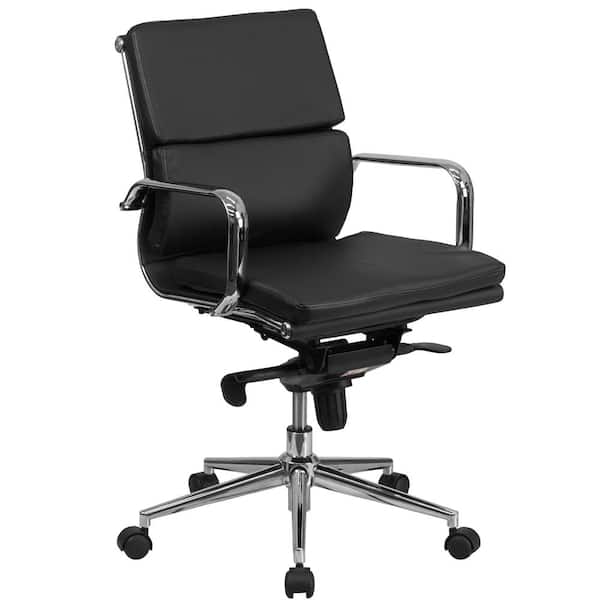 Mid-Back Black Leather Executive Swivel Office Chair with Synchro-Tilt Mechanism