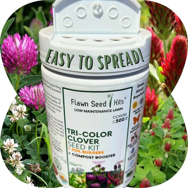 Tricolor Clover Flower Lawn Seed Kit, Easy Spread Shaker, Low Mnt, Alternative Ground Cover, Covers Up to 500 sq. ft.