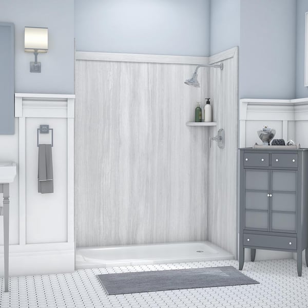 Adaptable 60 in. x 60 in. x 80 in. 9-Piece Easy Up Adhesive Alcove Shower Surround in Silver Strata
