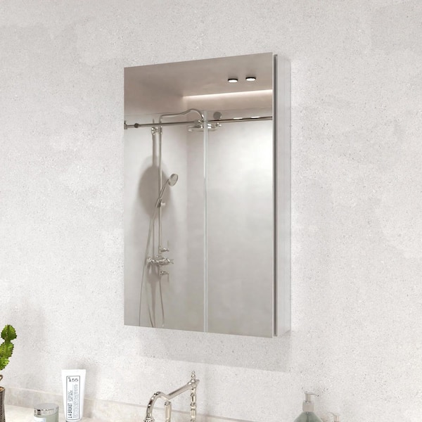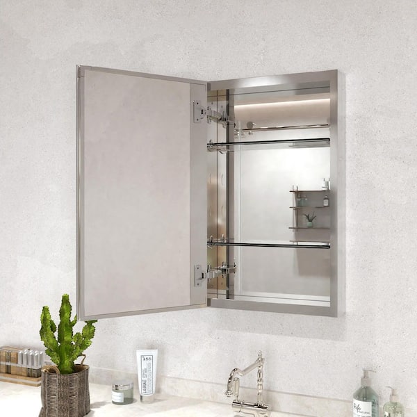 Flicker 15 in. W x 24 in. H Rectangular Aluminum Recessed/Surface Mount Medicine Cabinet with Mirror in Silver