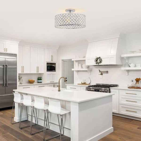 14.76 in. 3-Light Chrome Modern Semi-Flush Mount Ceiling Light with Crystal Shade