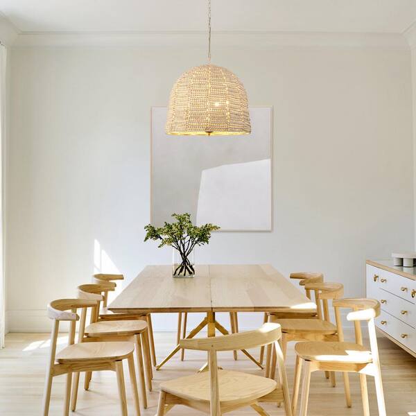 Boho 19.7 in. 4-Light Distressed White Wood Beaded Chandelier Candle Style Pendant