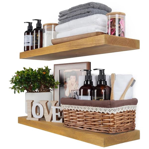 Floating Shelves 24 in. W x 6. 7 in. D Yellow Brown Wood Rustic Decorative Wall Shelf